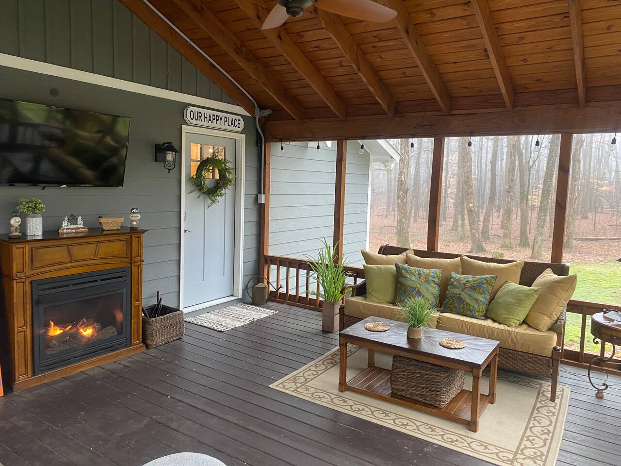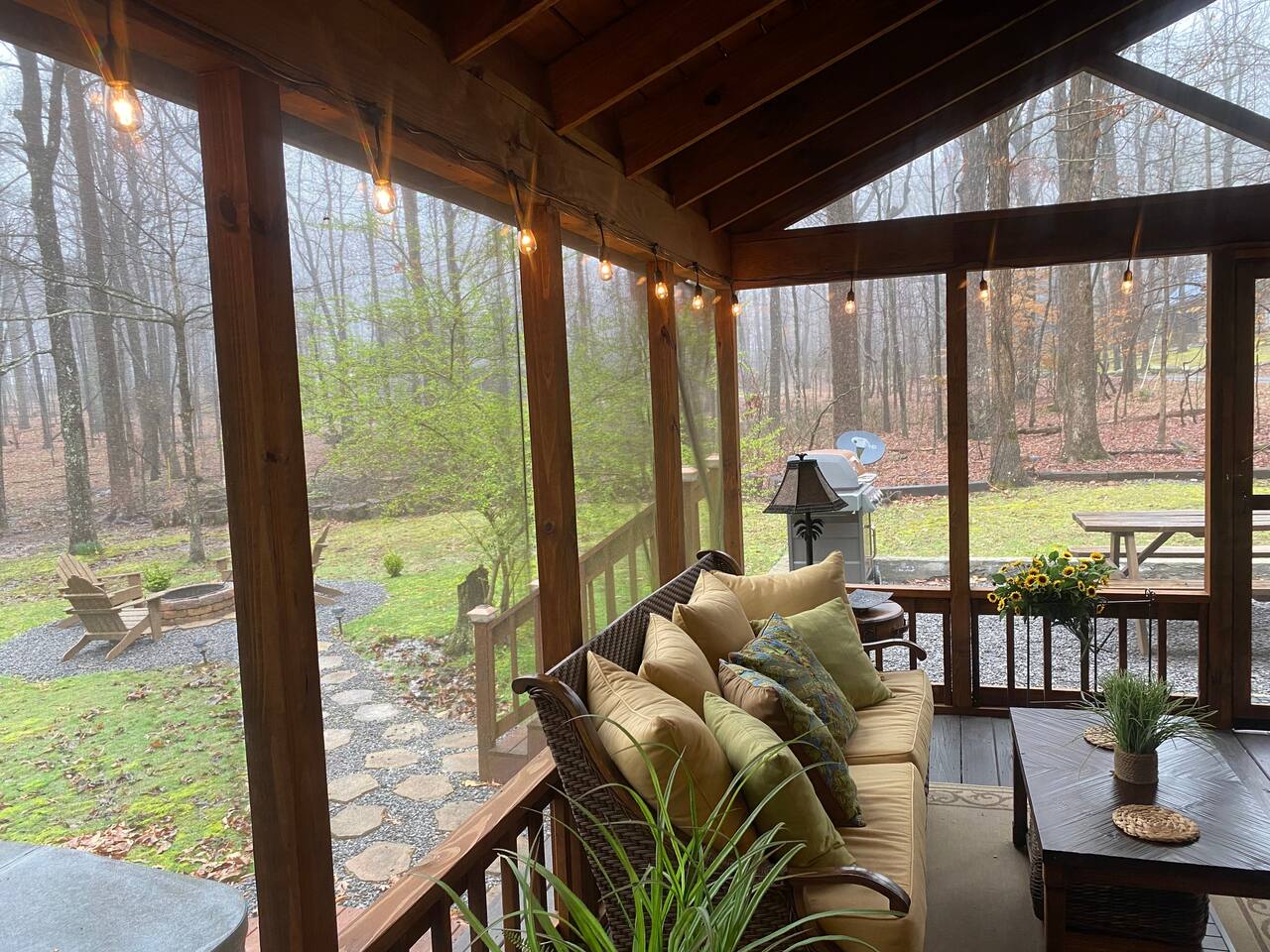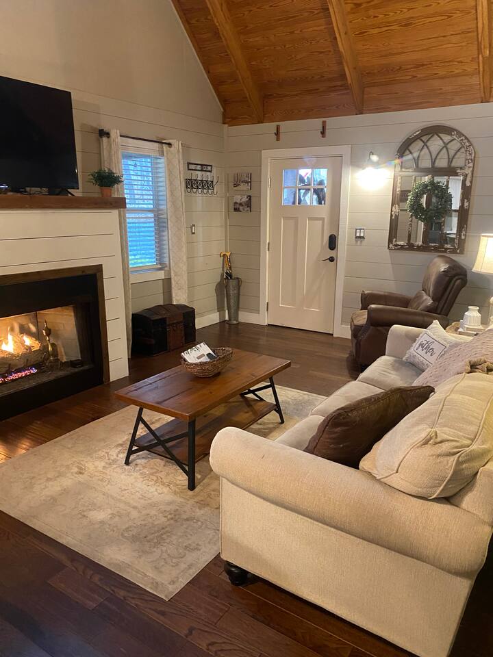 Cozy mountain cottage just minutes from downtown Mentone! Living room: A gas fireplace is the center piece of the comfy living room with a sofa you just want to curl up on as well as a plush leather chair to relax and unwind while playing board games or streaming your favorite shows on the large screen TV. Southern Star has fast, reliable WiFi for streaming, or if you must, working! Kitchen and Dining: The kitchen is well equipped with everything you need to prepare a delicious meal. This is a Keurig coffee maker, a drip coffee pot, toaster, stove, oven and microwave. The dining table easily seats 4 for all your dining needs. Bedrooms and Bathroom: Southern Star has 1 bedroom with a loft space and 1 full bath. The master bedroom is downstairs and with a queen-sized memory foam mattress provides for a comfortable night's sleep. In the master there is also a small work desk as well as a large walk-in closet. Upstairs there is an open loft area with 2 twin beds for extra sleeping space. A full bathroom is also located downstairs and includes a tub and shower combo with a rain shower head. Outdoors: There is an open front porch with 2 rocking chairs to watch birds flock to our many bird feeders located around the property. The screened-in side porch has an incredible swing bed, couch, rocking chair, gas fireplace, outdoor TV and more making it the perfect place to spend any season! You can even sleep outside in late-spring, summer and early fall months! A Weber propane grill is available for use as well as a fire pit with a picnic table perfect for roasting hotdogs and making s'mores! A 4 person hot tub is situated to give you complete privacy to relax and unwind after a day of hiking the many trails in the Mentone area. Memories are waiting to be made at Southern Star!