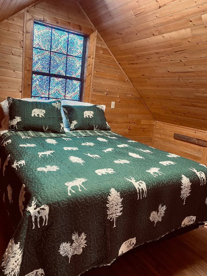 Cozy mountain cottage just minutes from downtown Mentone! Living room: A gas fireplace is the center piece of the comfy living room with a leather reclining sofa and love seat you just want to curl up on to relax and unwind while playing board games or streaming your favorite shows on the large screen TV. Mountain Music has fast, reliable WiFi for streaming, or if you must, working! Kitchen and Dining: The kitchen is well equipped with everything you need to prepare a delicious meal. This is a Keurig coffee maker, a drip coffee pot, stove, oven and microwave. The dining table easily seats 4 for all your dining needs. Bedrooms and Bathroom: Mountain Music has 1 bedroom with a loft space and 2 full baths. The master bedroom is downstairs and with a full-sized log bed with a pillow top mattress that provides for a comfortable night's sleep. In the master there is a window seat, large closet, dresser drawers and ensuite with a washer and dryer. Ensuite has a stand up shower, sink and toilet. Upstairs there is an open loft area with a queen-sized bed for extra sleeping space and table workspace or storage. Another full bathroom is also located downstairs and includes a tub and shower combo with large storage cabinets. Outdoors: There is an open front porch with 1 rocking chair and a porch swing to watch birds flock to our many bird feeders located around the property. The screened-in back porch has an incredible view, cushy seating, multiple tables and chairs for extra seating, a cozy fire table, privacy screens for extra [privacy and more making it the perfect place to spend any season! A fire pit with able seating is located outside, perfect for roasting hotdogs and making s'mores! A spacious 4 person hot tub is the perfect place to unwind after a day of hiking the many trails around Mentone. Located under a pavilion looking out over our wooded lot, deer can be seen most days grazing while you soak! Memories are waiting to be made at Mountain Music!
